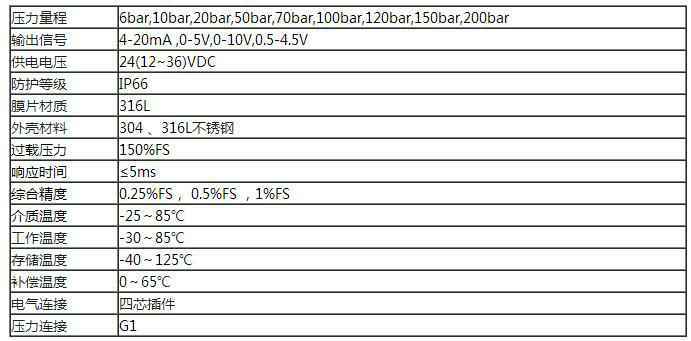 额定量程:6bar,10bar,20bar,50bar,70bar,100bar,120bar,150bar,200bar