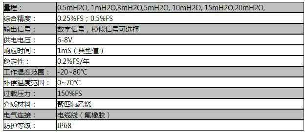 额定量程:0.5mH2O, 1mH2O, 3mH2O, 5mH2O, 10mH2O, 15mH2O, 20mH2O,