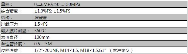 额定量程:0….6MPa至0….150MPa
